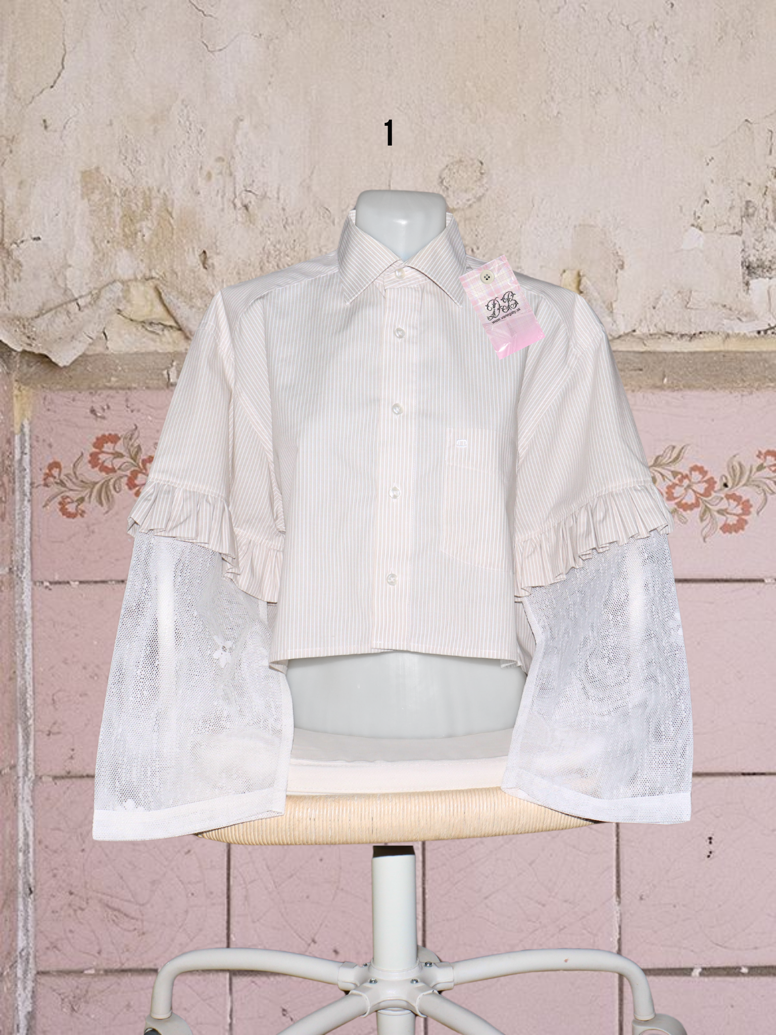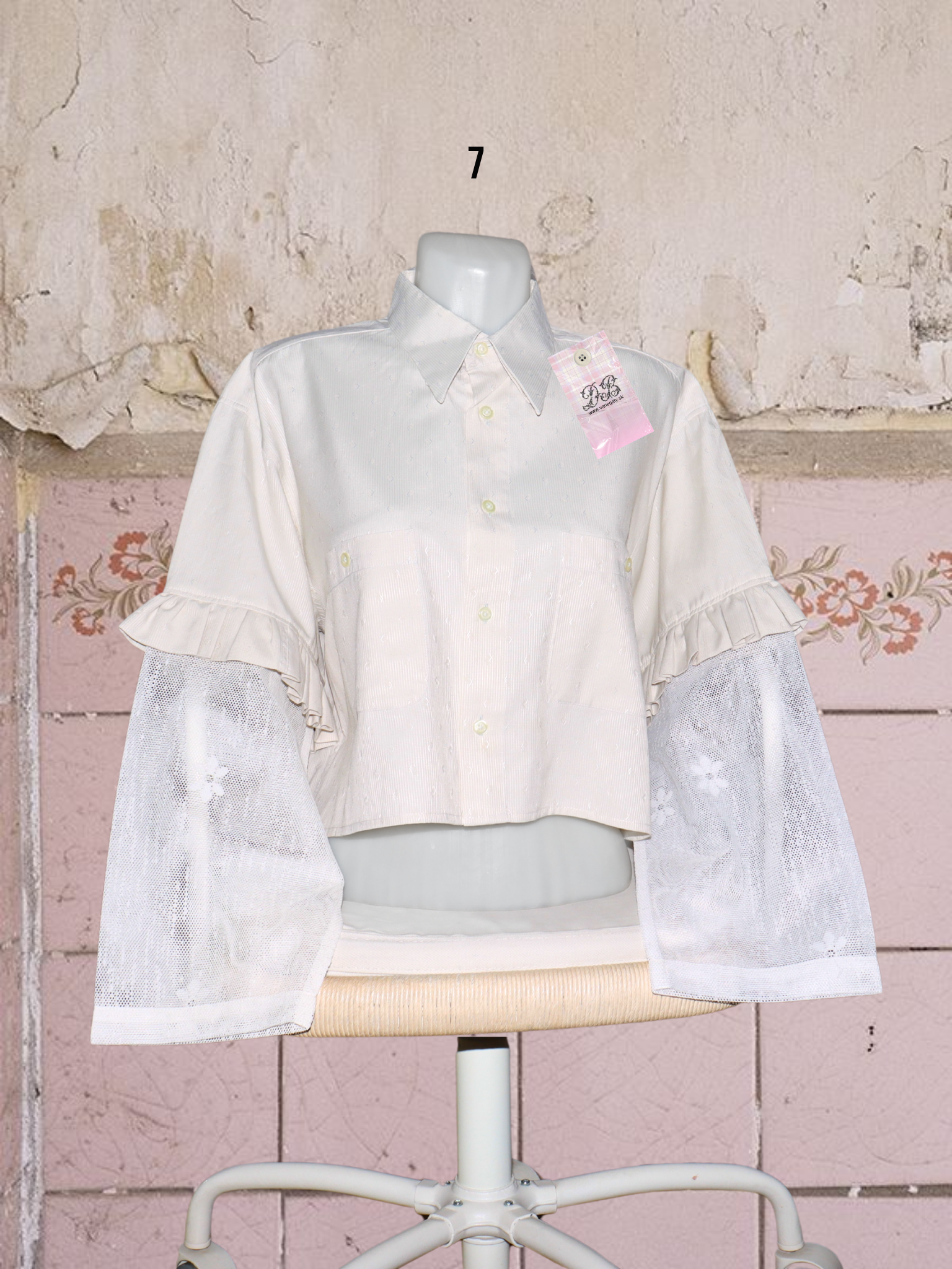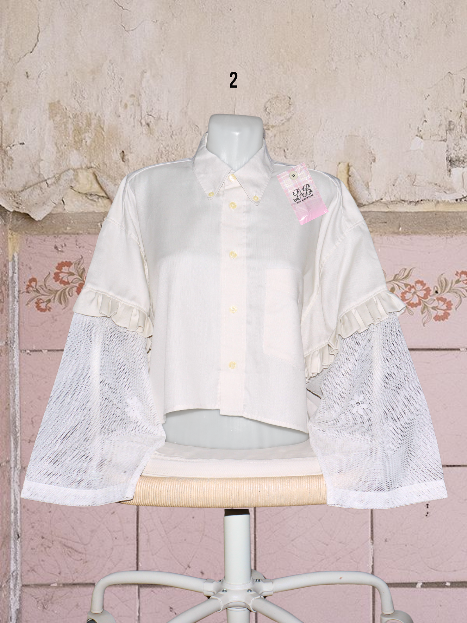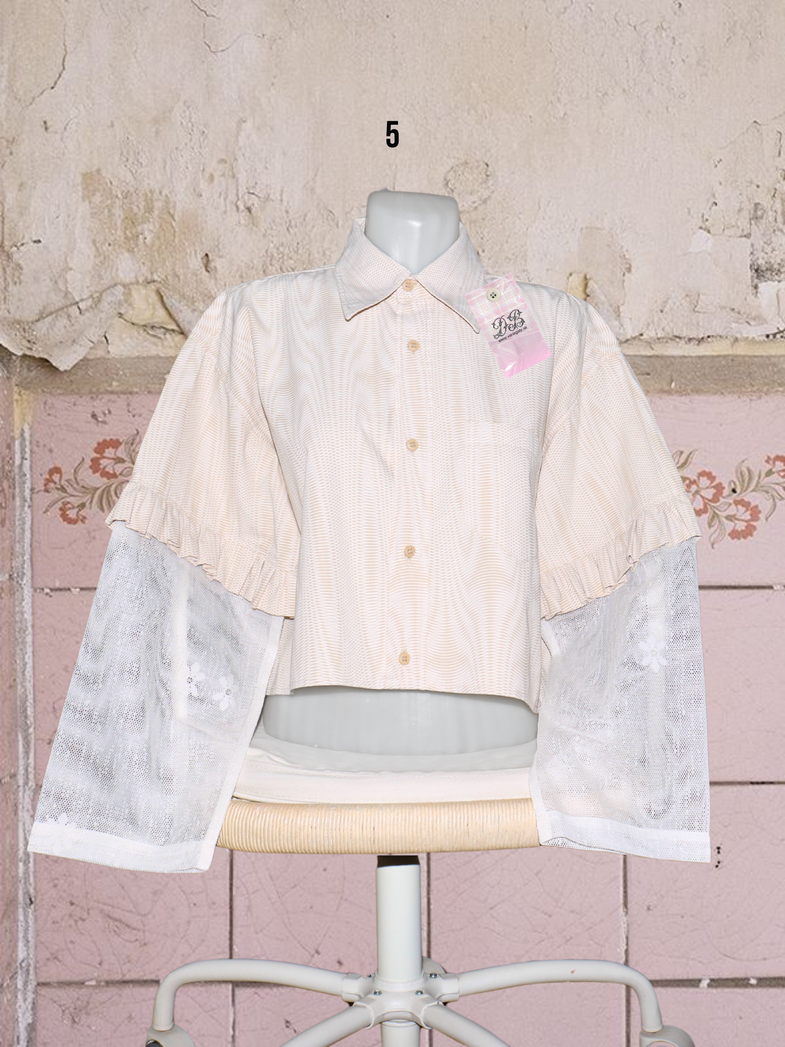 ● upcyklované košele so (priesvitnými) záclonovými rukávmi s kvetmi