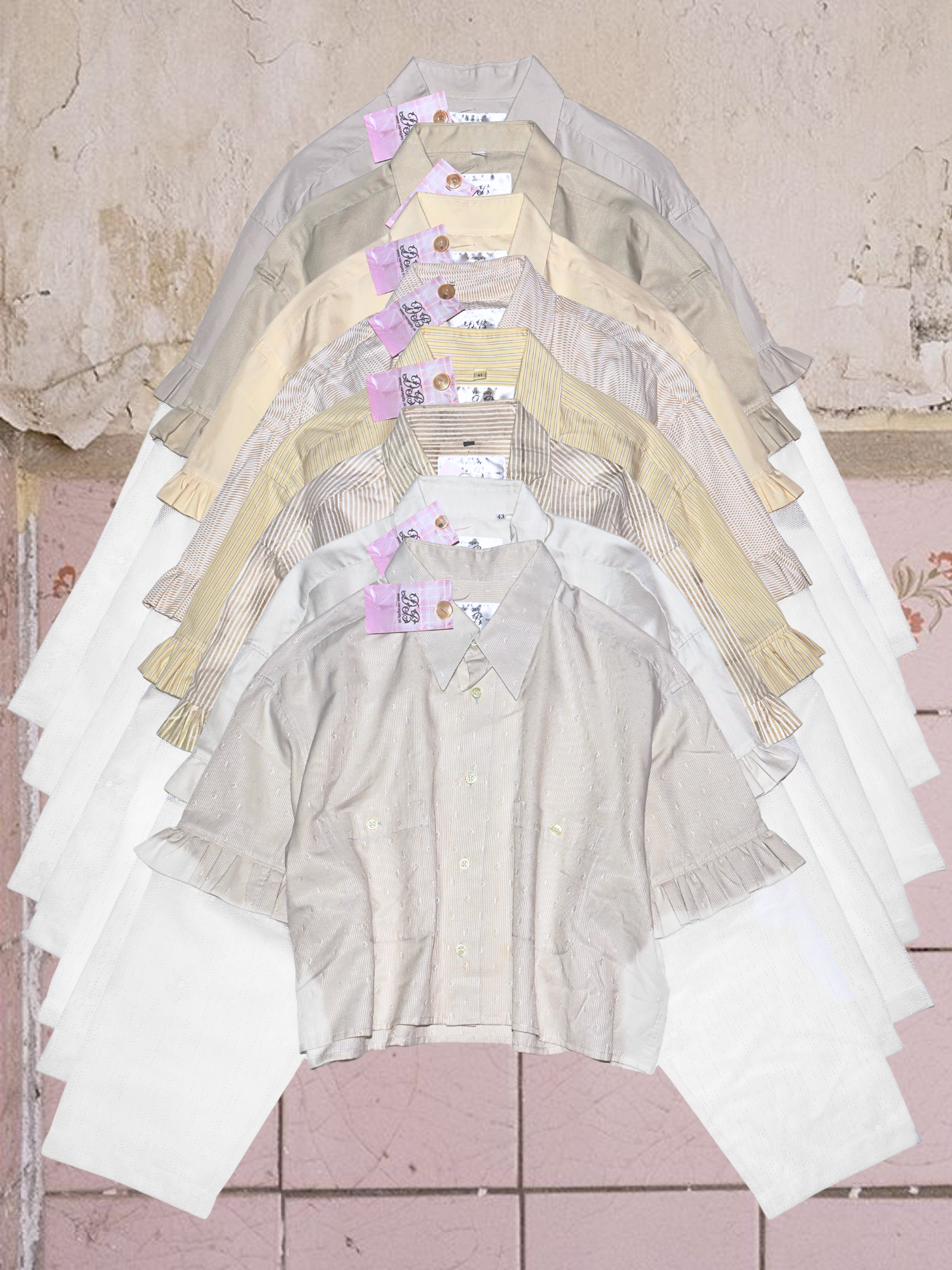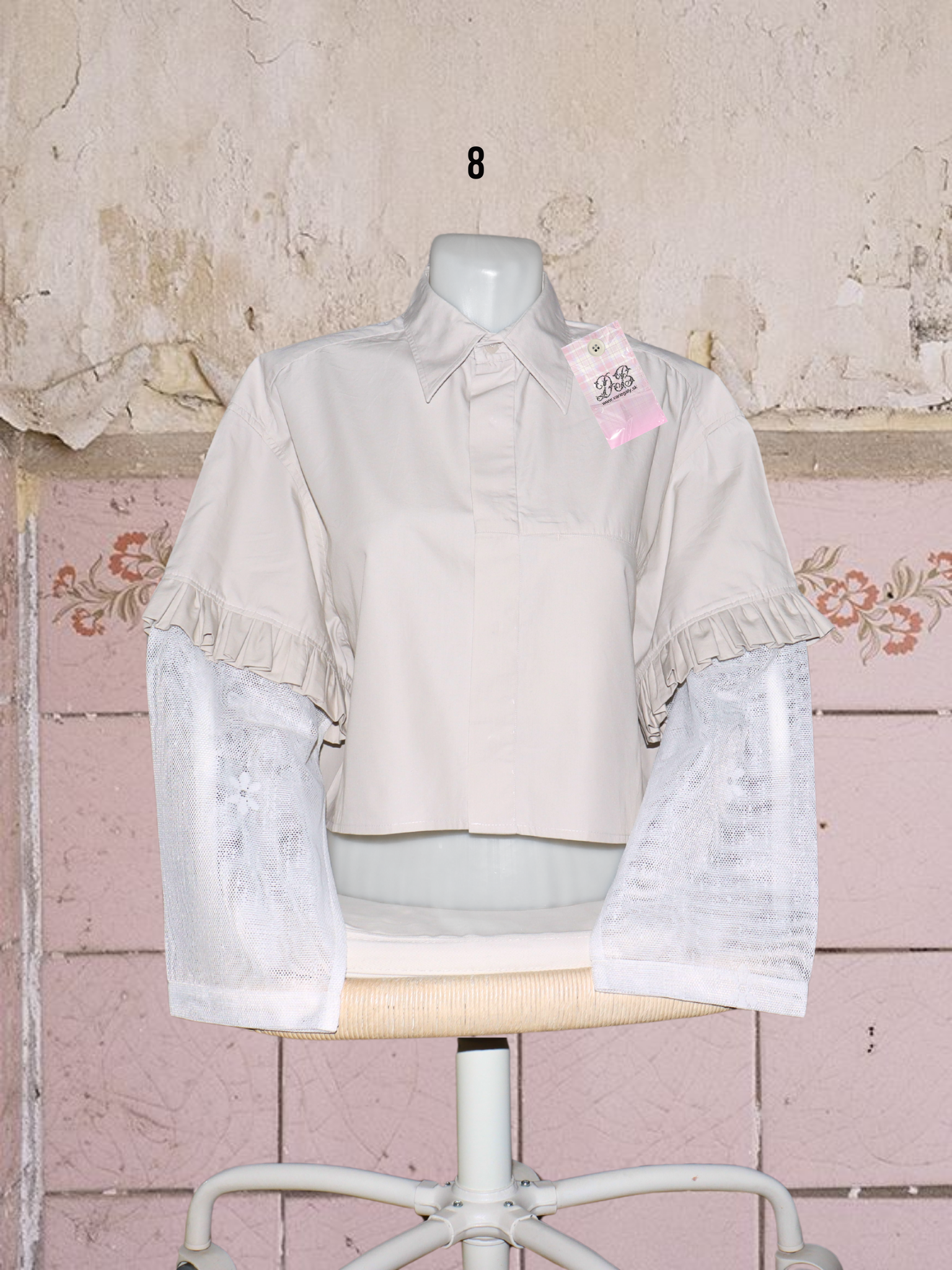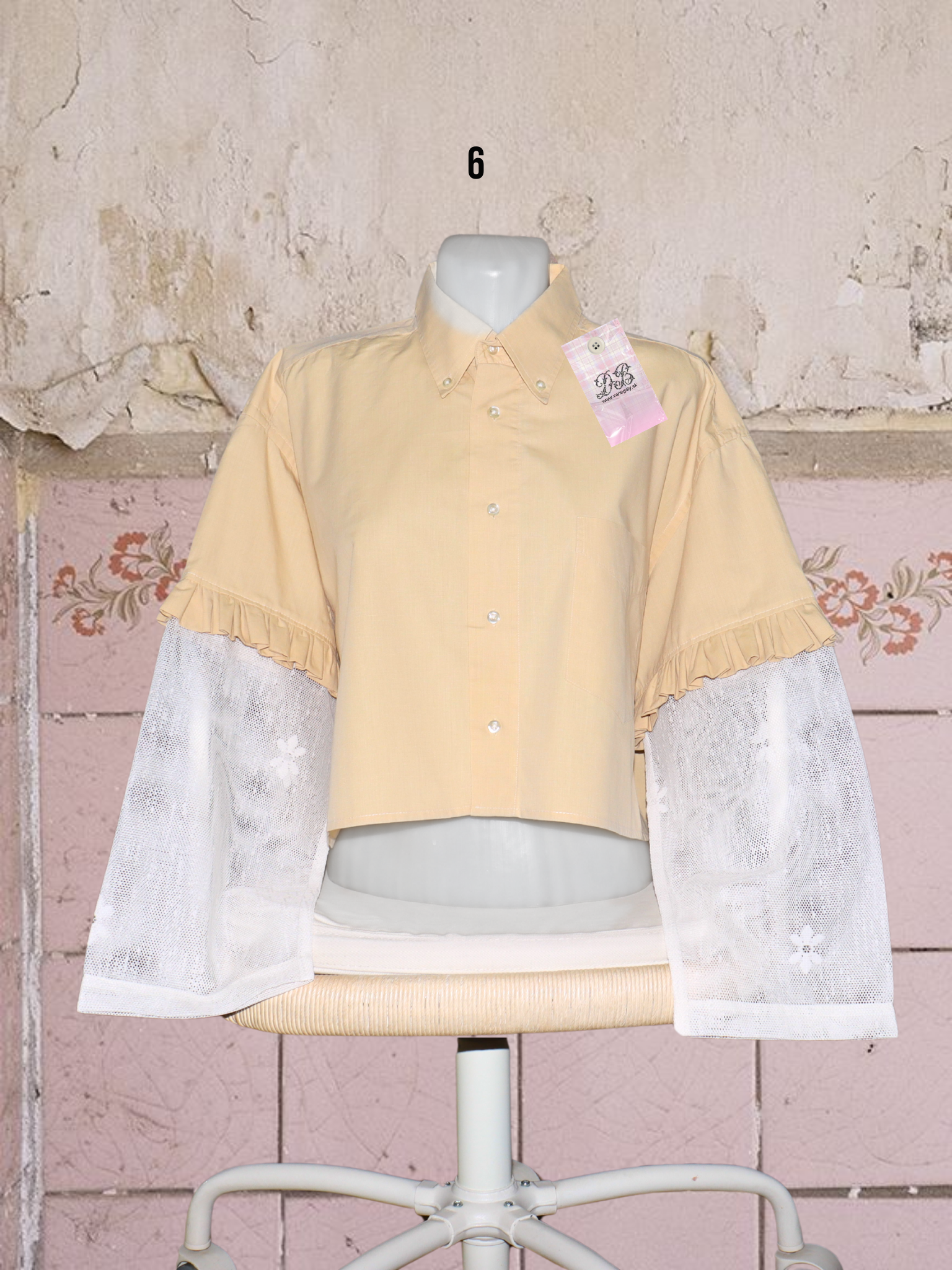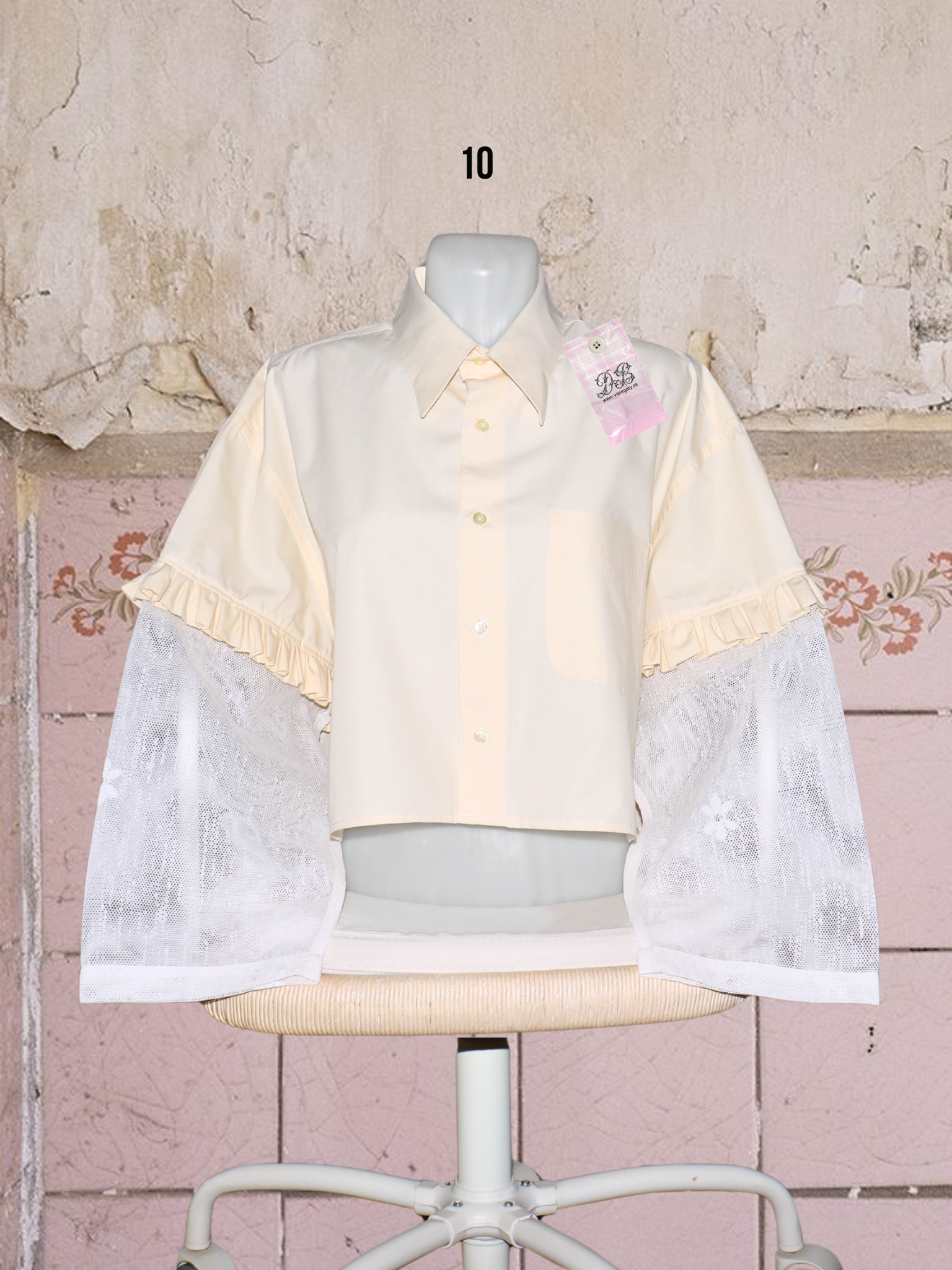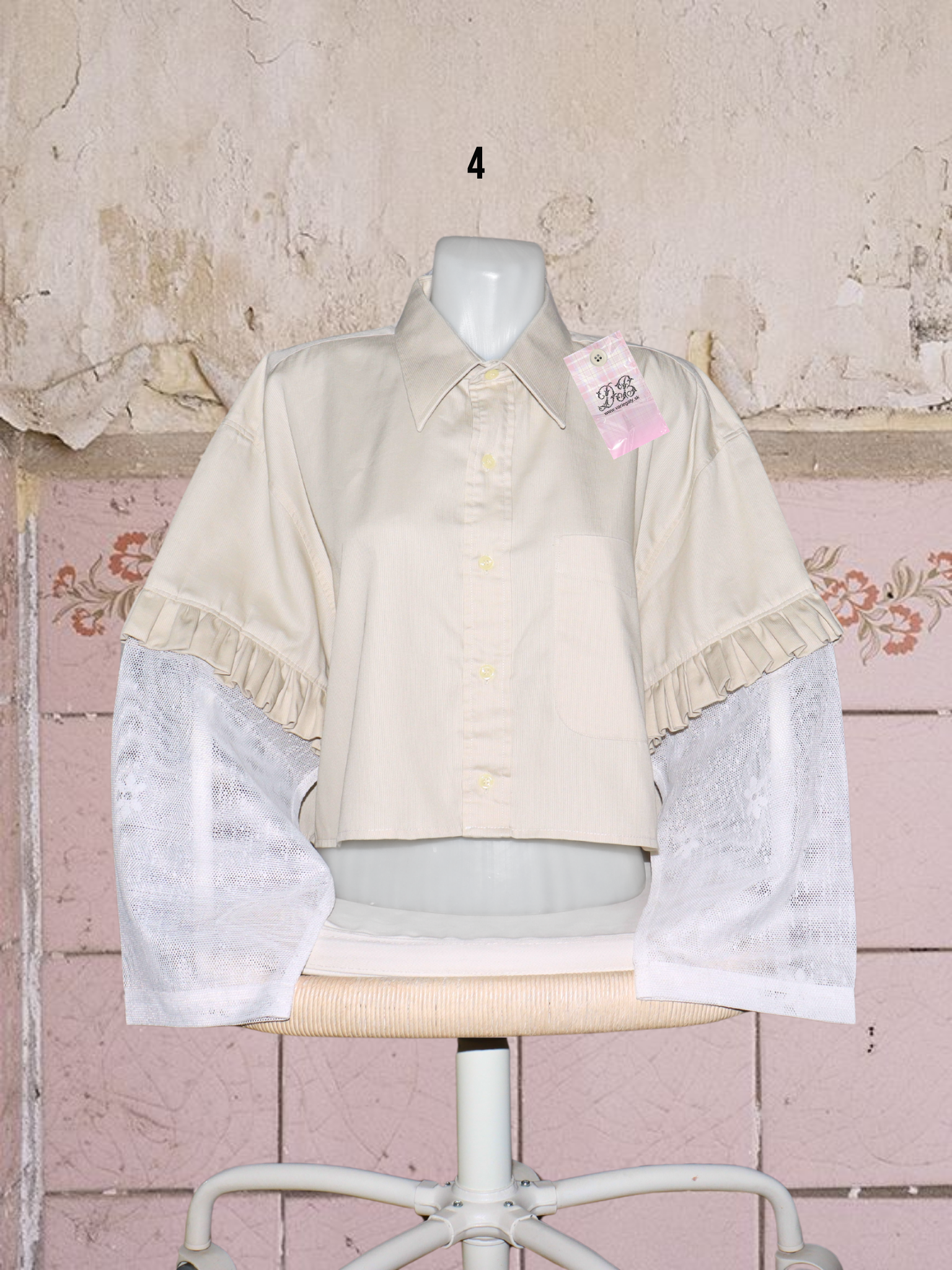● upcyklované košele so (priesvitnými) záclonovými rukávmi s kvetmi