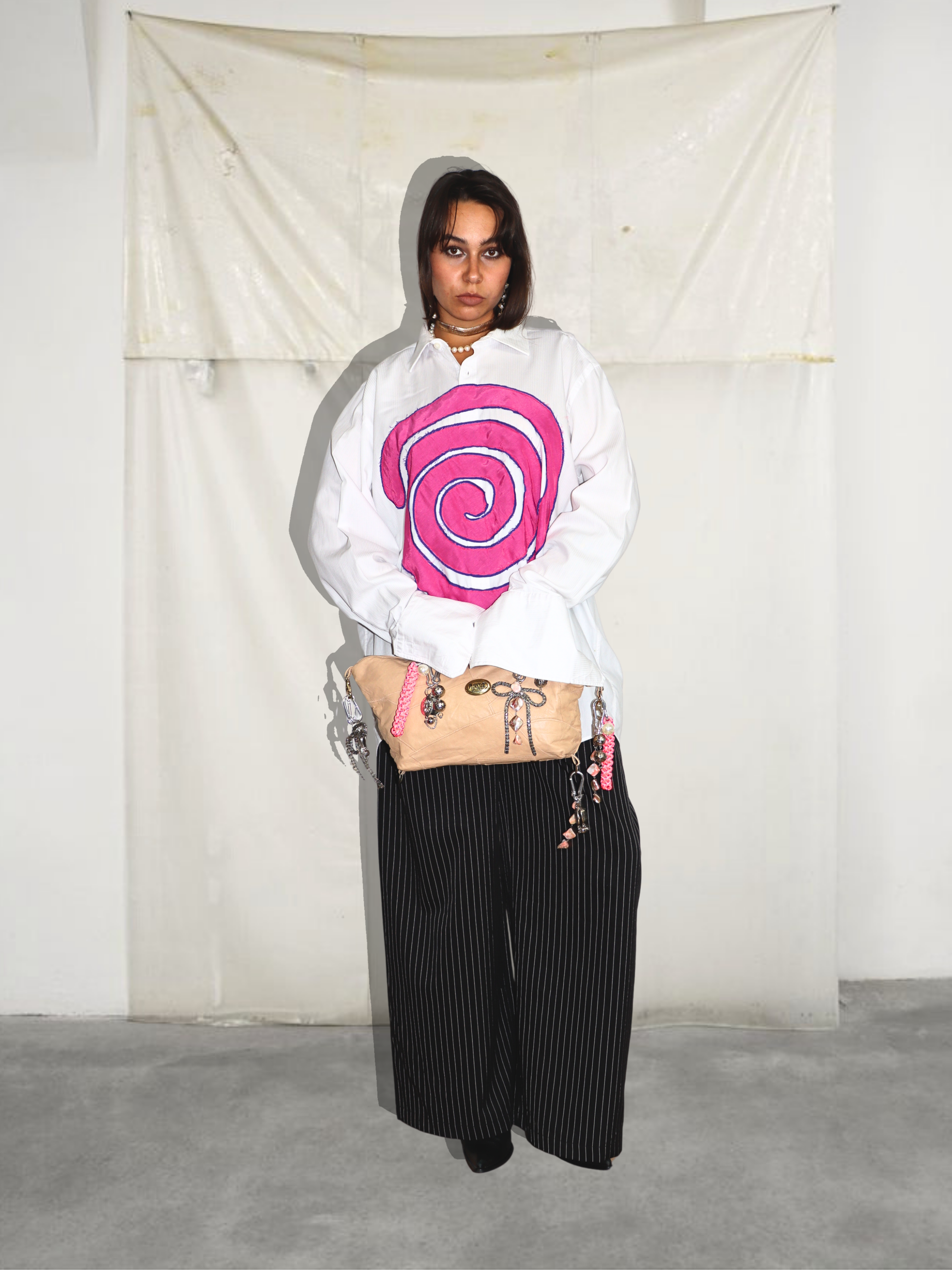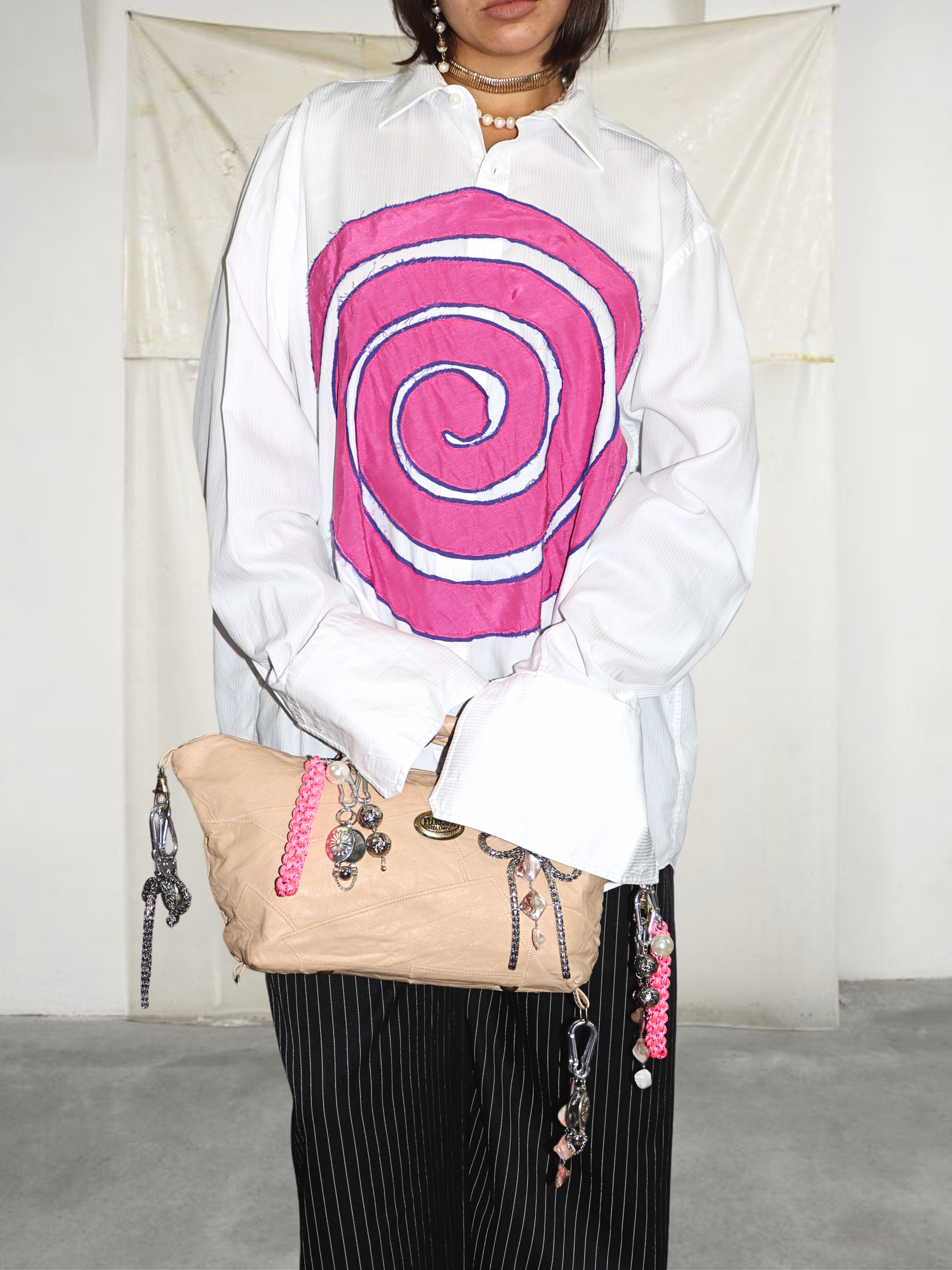 ● upcyklované unisex košele s aplikáciou v tvare špirály