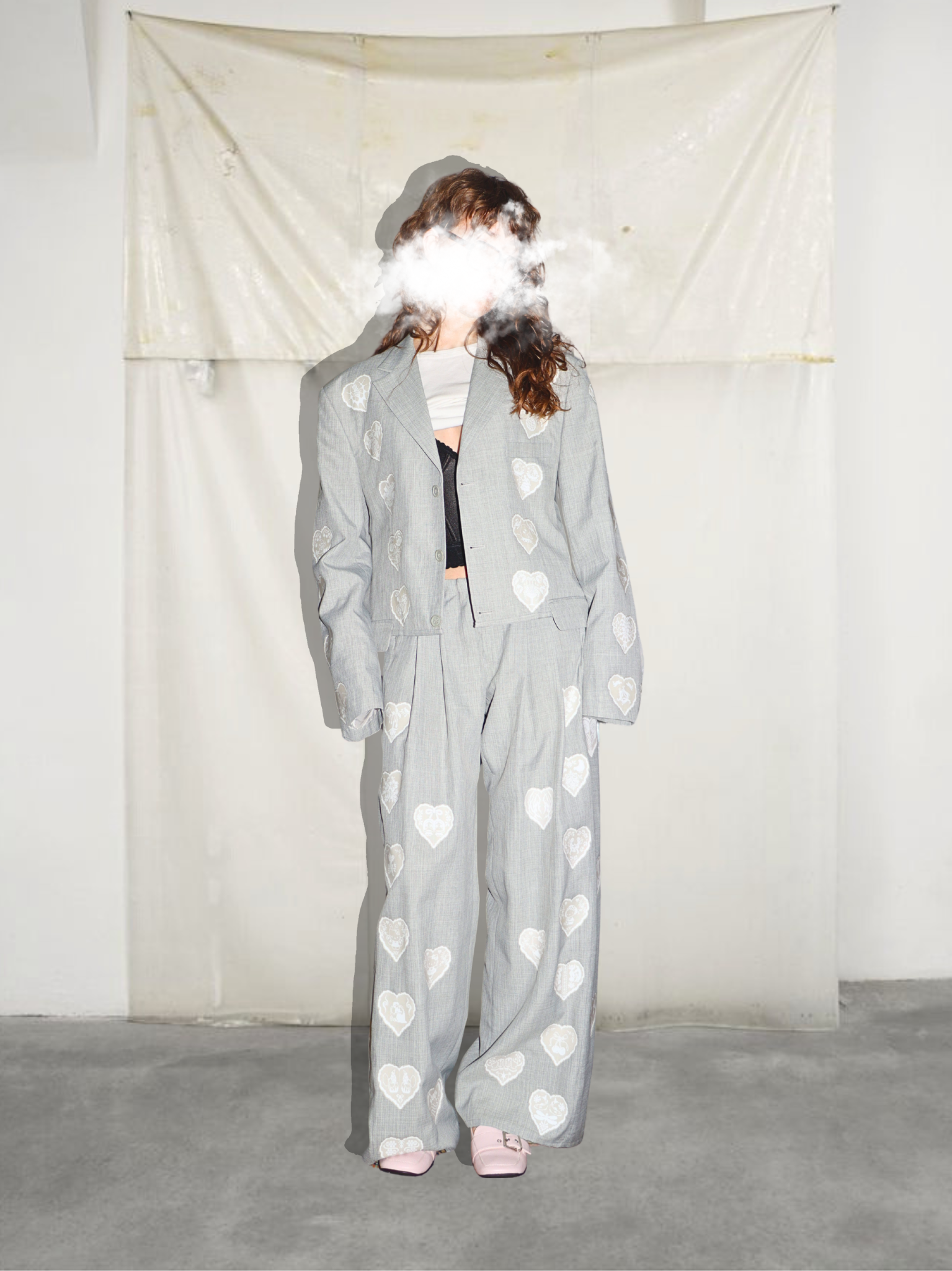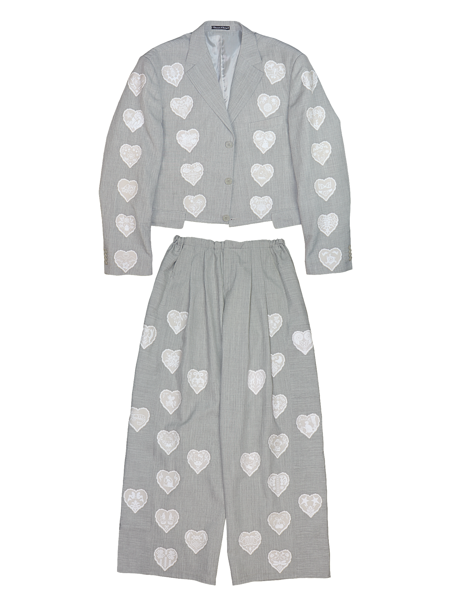 ● upcyklovaný oblek s potlačou Variegaty srdcí v 48 dizajnoch