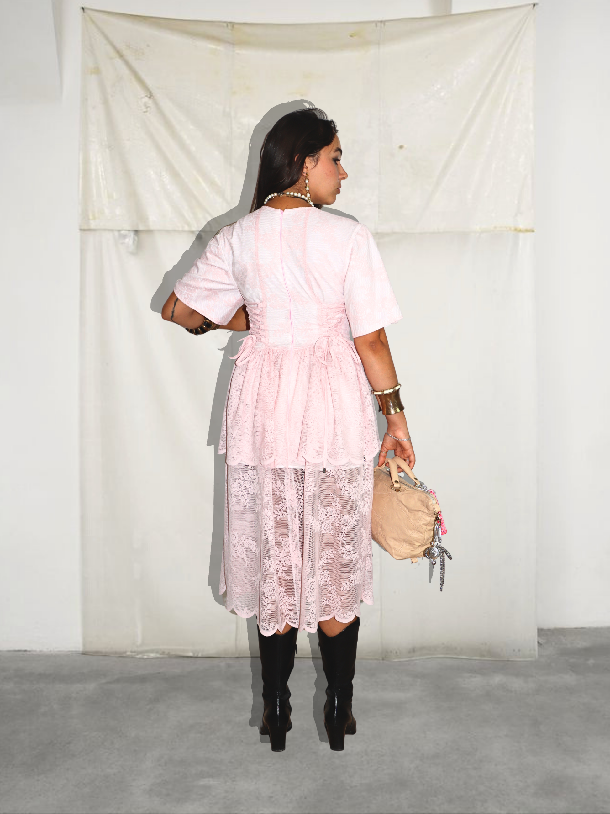 ● na zadných dieloch šiat sa po oboch stranách nachádza viazanie, ktorým prispôsobíte veľkosť v oblasti pása a krásne vytvarujete postavu