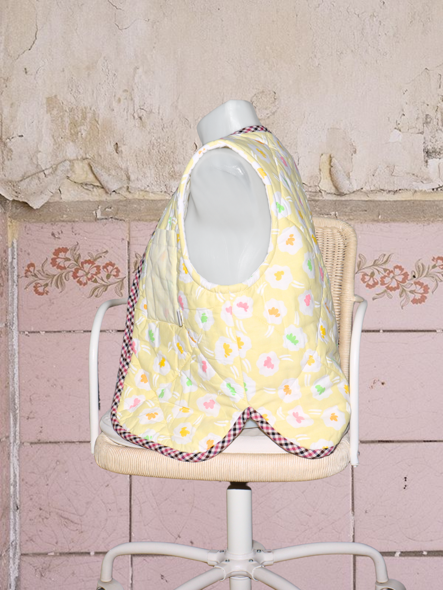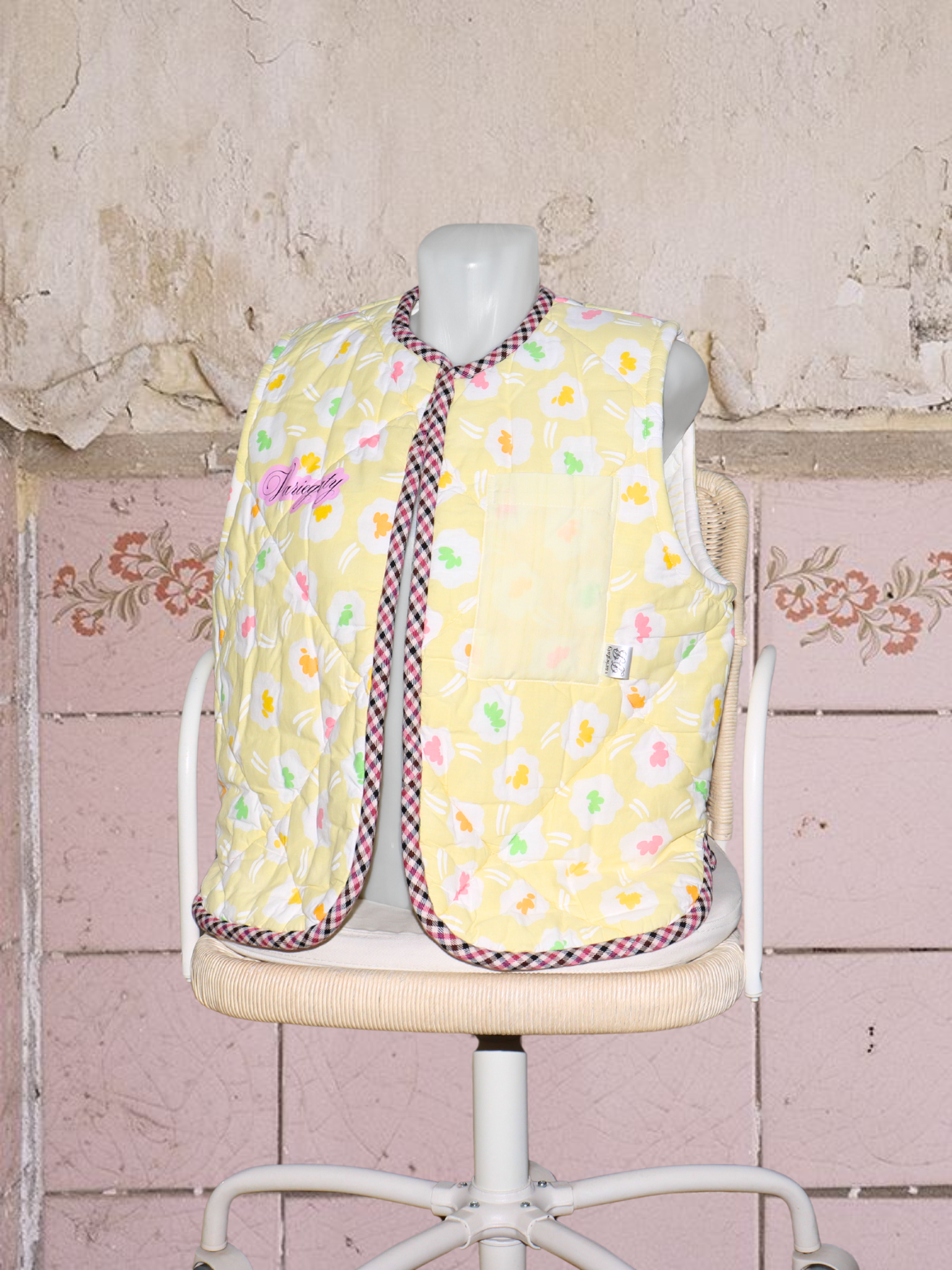 ● upcyklované vesty ušité z bytového textilu