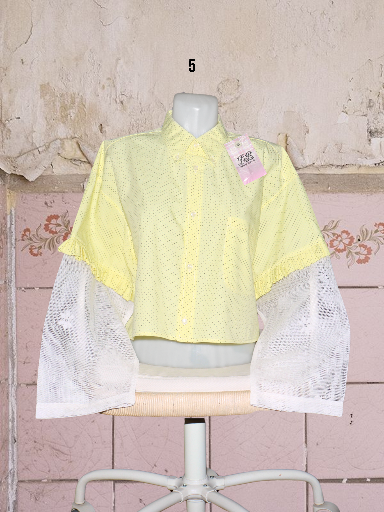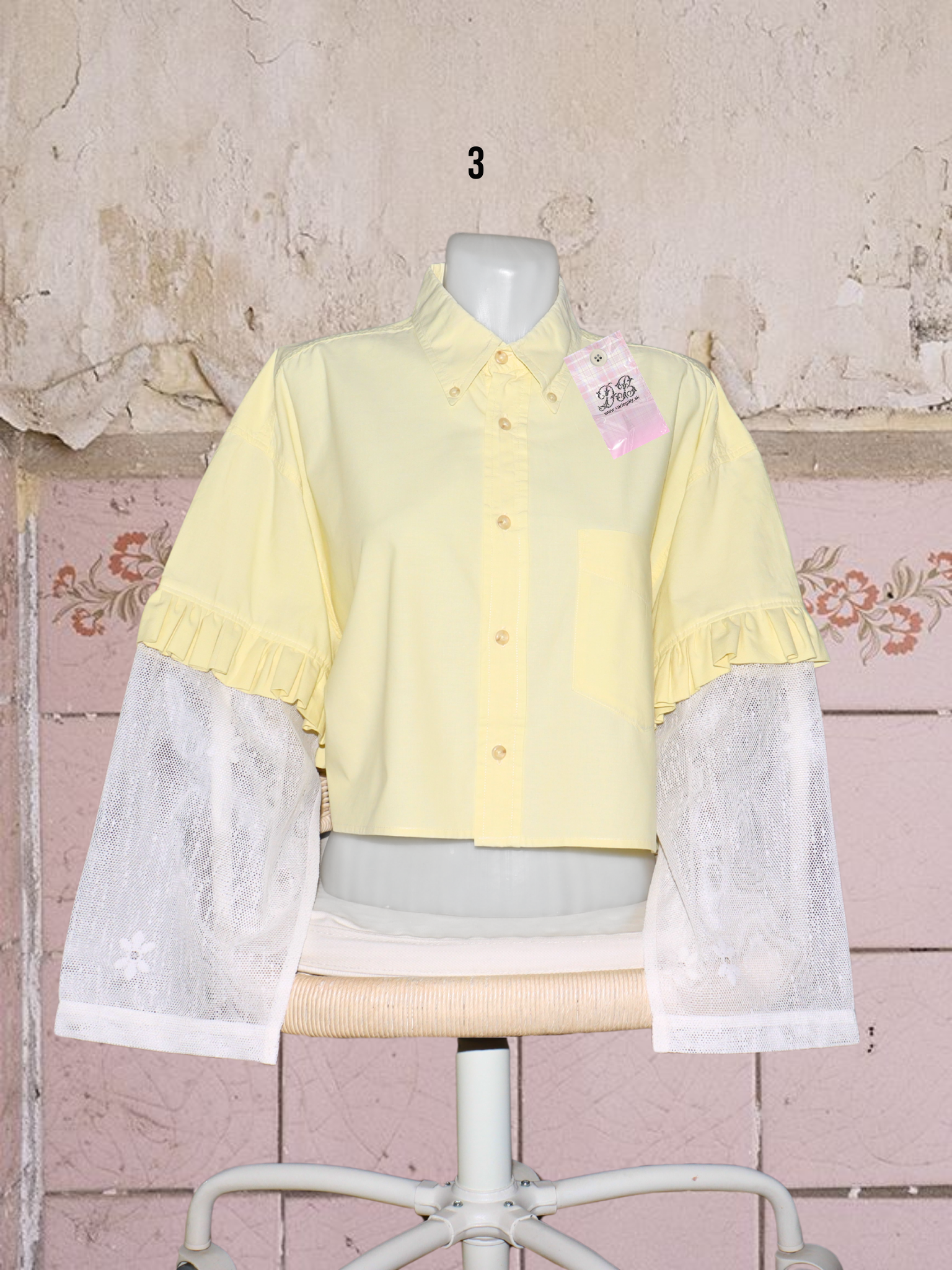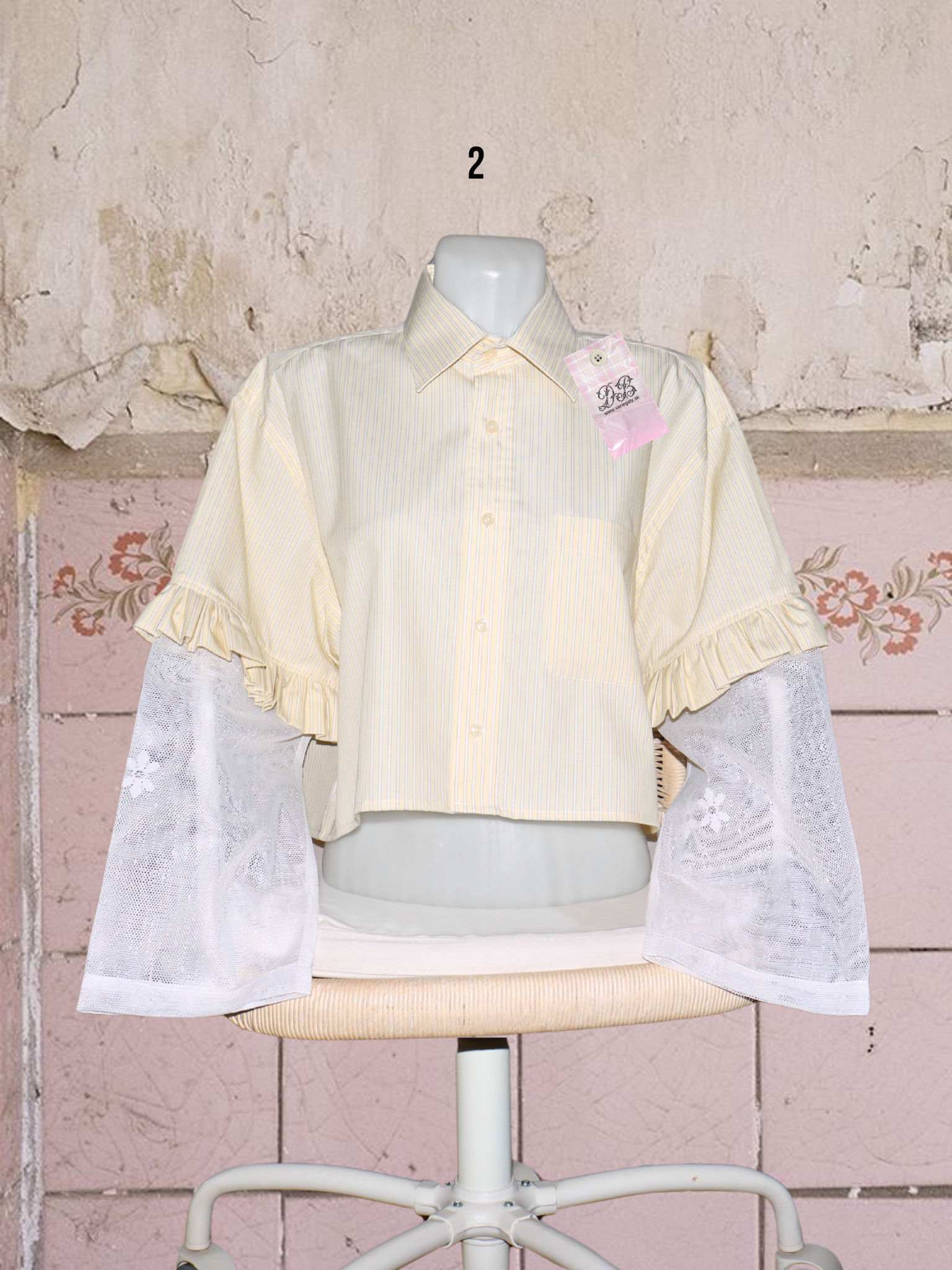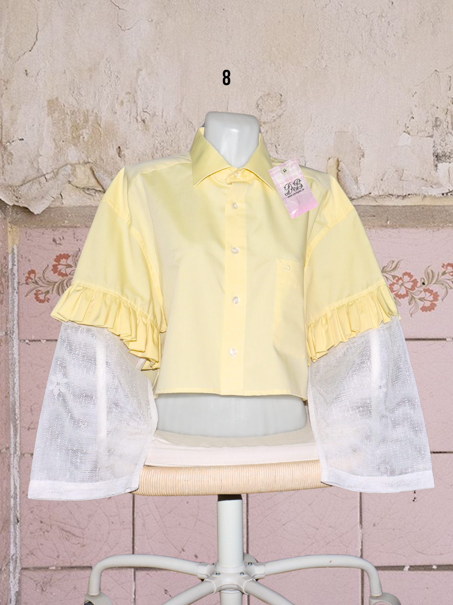 ● upcyklované košele so (priesvitnými) záclonovými rukávmi s kvetmi