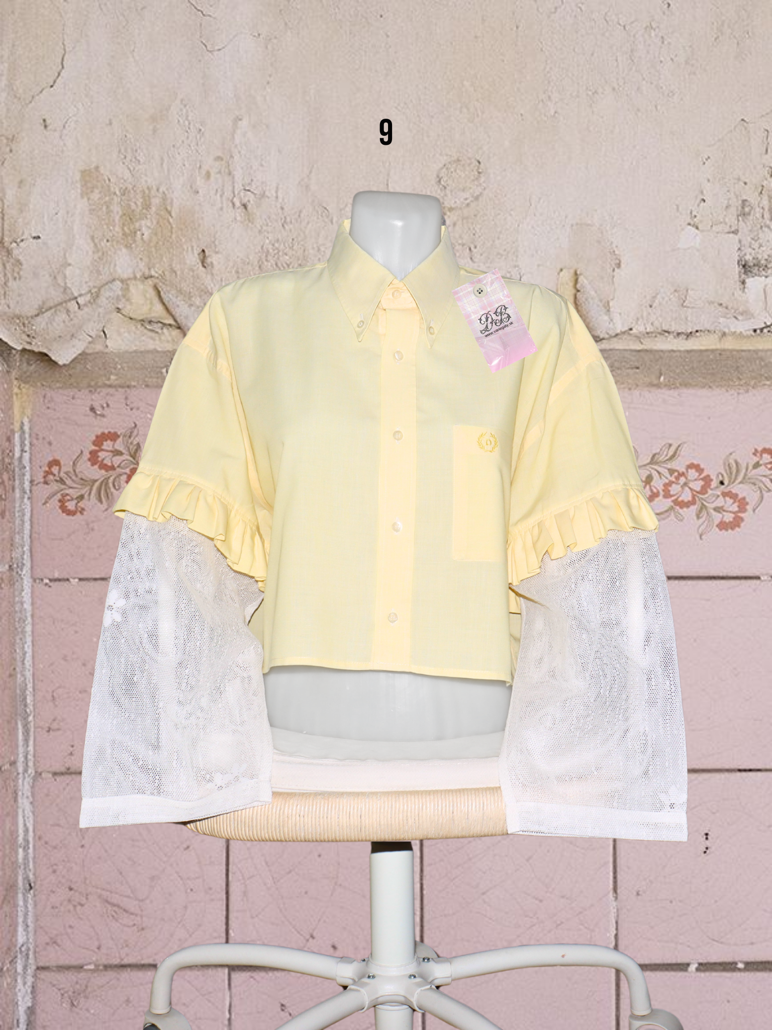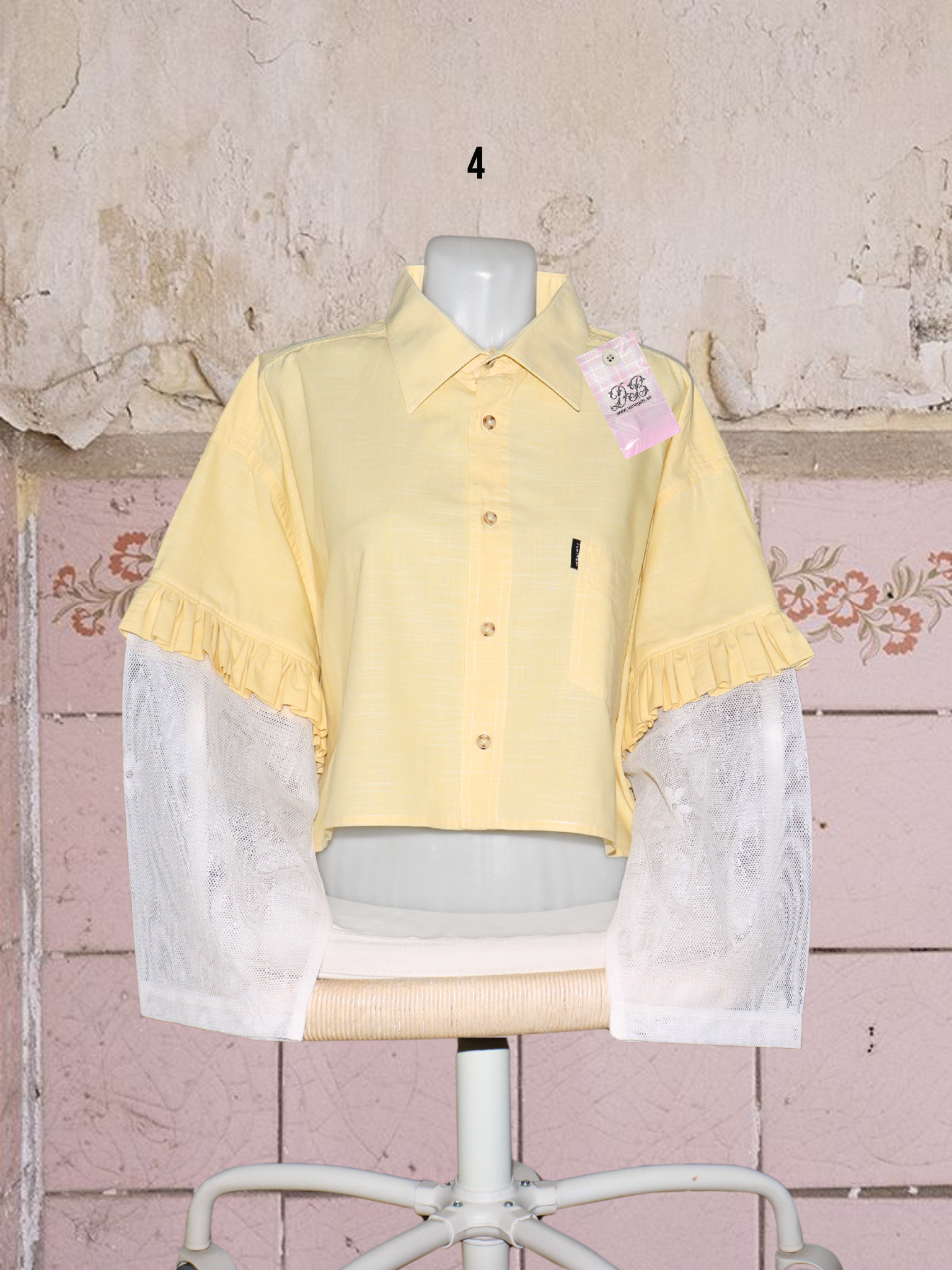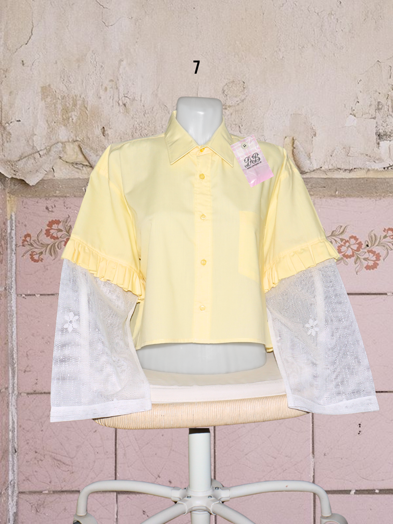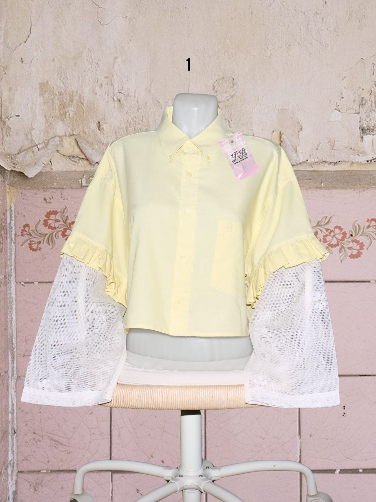 ● upcyklované košele so (priesvitnými) záclonovými rukávmi s kvetmi